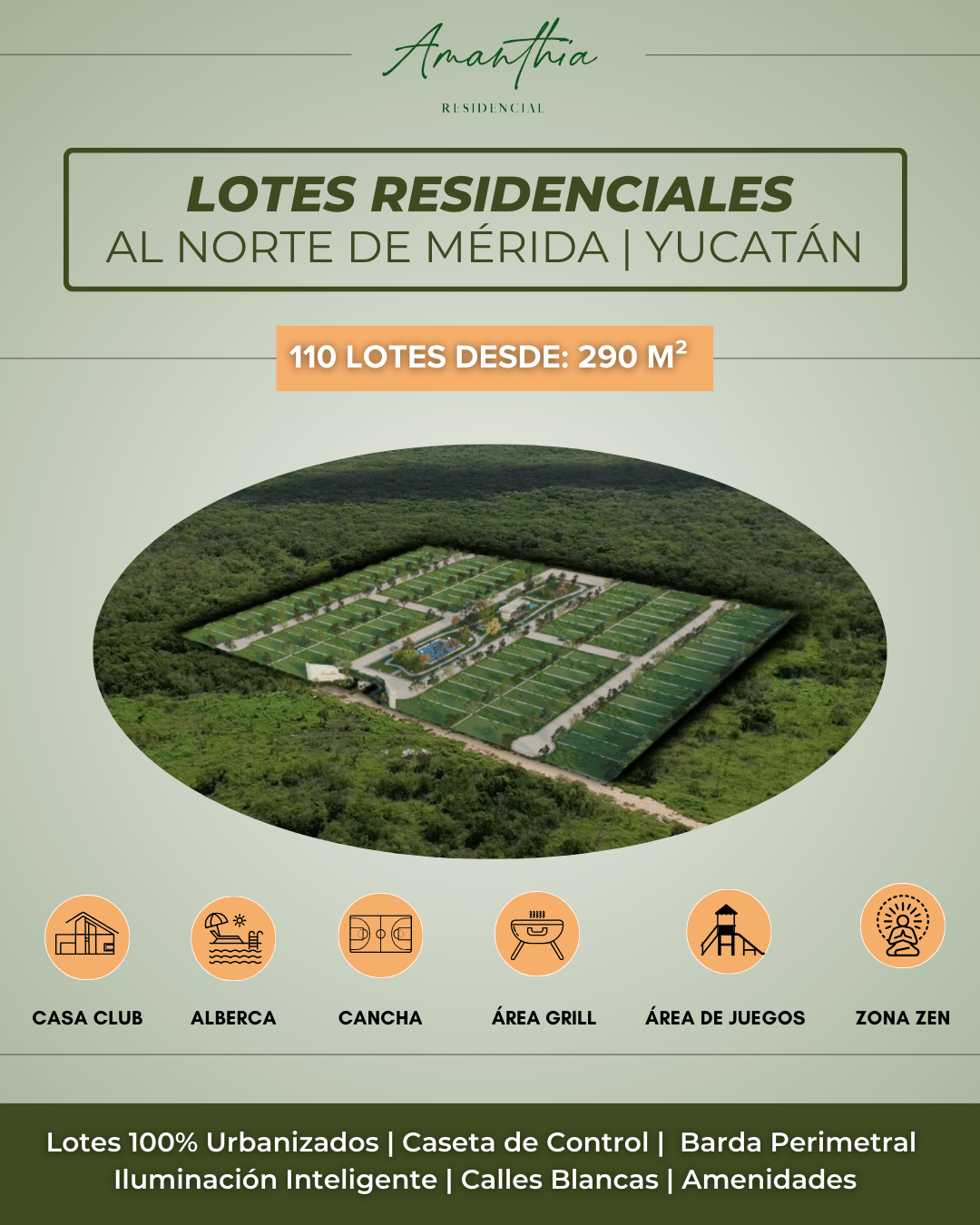 Amanthia es un desarrollo residencial exclusivo al norte de Mérida. Un entorno tranquilo, rodeado de naturaleza y pensado para construir tu hogar con calidad, diseño y plusvalía.