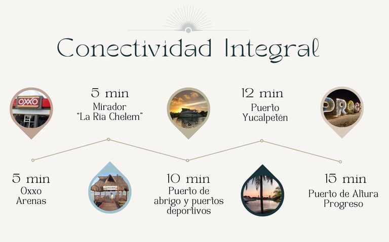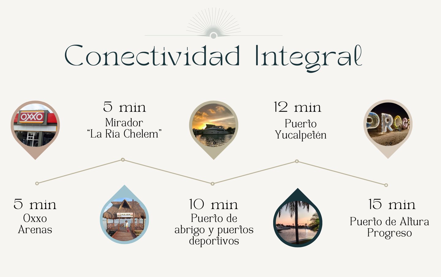 A solo 5 minutos del mirador de “La Ría Chelem” y a 15 minutos del Puerto de Altura de Progreso. Rodeado de servicios, conectividad y mar.