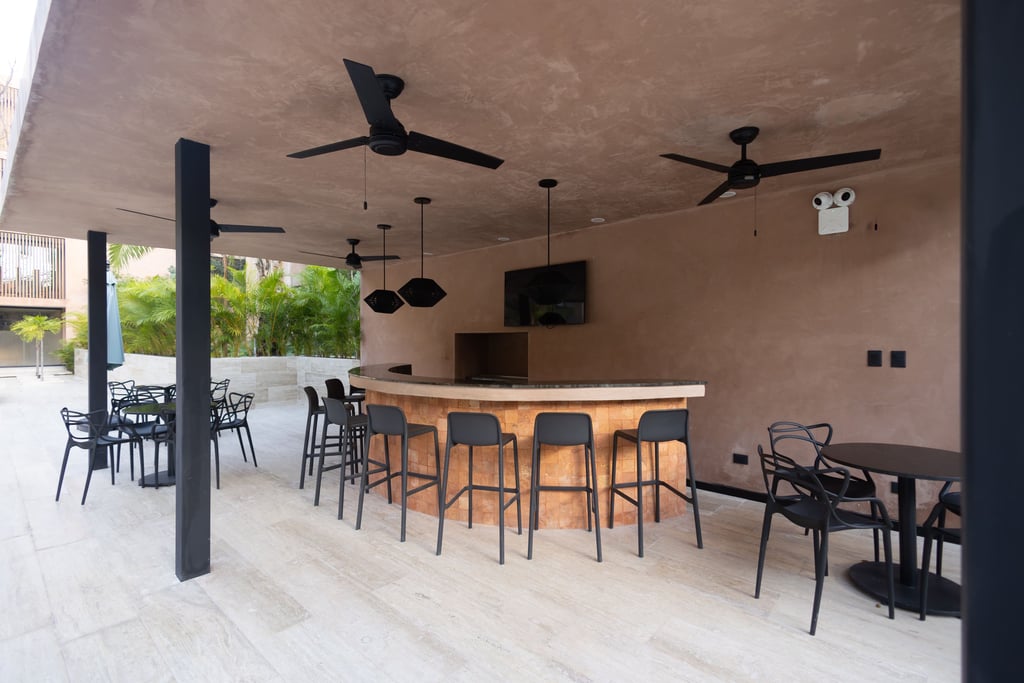 Piscinas con asoleadero, Juice Bar y área social, gimnasio y salón grill, baby room y ludoteca, coworking con bar y salas de TV, bodegas y áreas de lavado, elevadores con vigilancia 24/7.